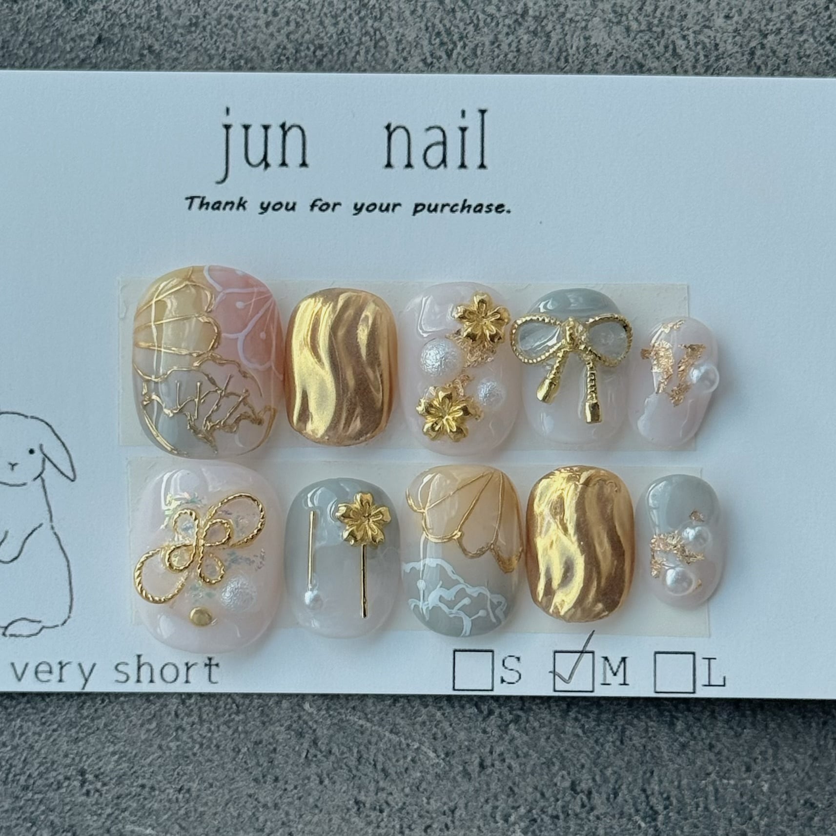 10回分です。 ※台紙からネイルチップを剥がす前に写真を撮っておくと順番が分からなくなる心配がないのでオススメです。 ※接着の際の注意点は為に油分が付いた状態で貼らない事です。 ※出かける直前に付けるのがおすすめです。 (メイクやトレイなどは済ませた状態) 【付け方】 ①爪をハンドソープで洗う。 ②消毒用アルコールで爪の表面を拭く。 ③爪全てにシールを貼る。 ④ネイルチップを付ける。 【外す時】 ①キッチンペーパーを敷いておく。 ②ぬるま湯に手を浸けながら、端っこから隙間を開けて剥がしていく。 ③両面テープを剥がしてキッチンペーパーに順番通り並べていく。 ※急いでる時は隙間にアルコールを吹きかけて取ることも出来ます。
